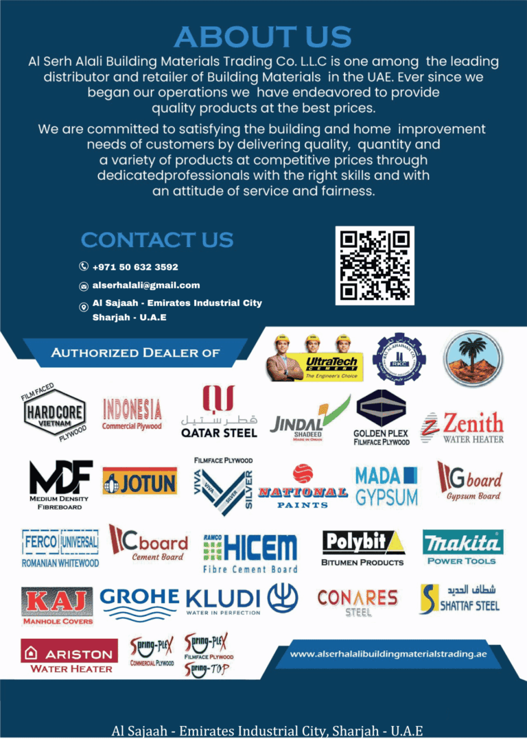 Al Serh Alali Building Materials Trading Co. L.L.C is one among the leading distributor and retailer of Building Materials in the UAE. Ever since we began our operations we have endeavored to provide quality products at the best prices.