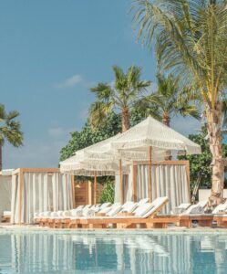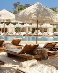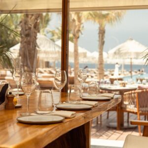 Drawing inspiration from the authenticity of Greek life, KYMA brings an enticing fusion of a Beach Restaurant & Pool experience to the urban Dubai landscape. Nestled at The Palm’s West Beach and embraced by the lush greenery, this locale promises a serene and secluded escape.
