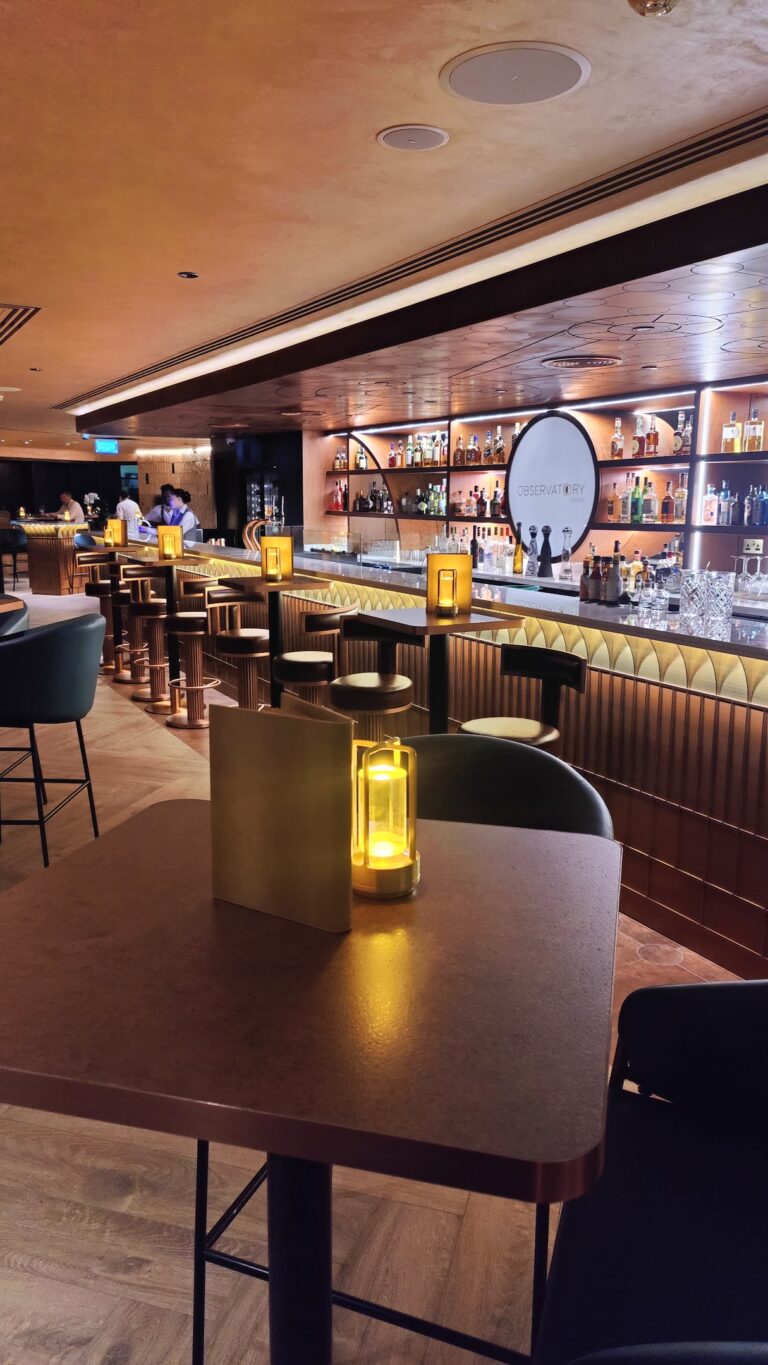 Located on the 52nd floor of the Dubai Marriott Harbour Hotel & Suites, the Observatory Lounge is a premier dining destination known for its 360-degree panoramic views of Dubai Marina and Palm Jumeirah.