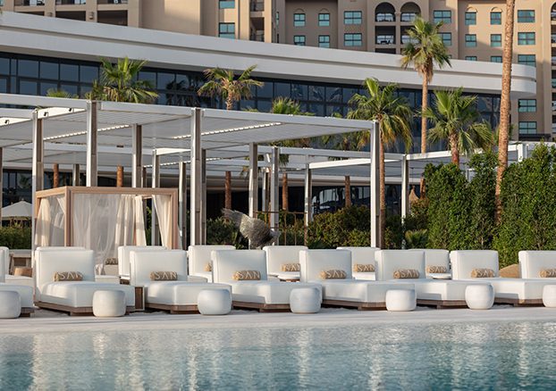 SĀN Beach is a culinary experience, beach destination, and soul retreat on The Palm, West Beach! Our club is a deep breath of fresh air in the city of crossroads, Dubai. Located on The Beach, Palm Jumeirah, we are a West Beach restaurant, pool and beach club that offers the best dining experience. We offer free valet at NH Collection The Palm. Enjoy an international menu from around the world, excellent cocktails, beachfront loungers, and great vibes. SĀN Beach is a unique, invigorating place rich with unique concepts.